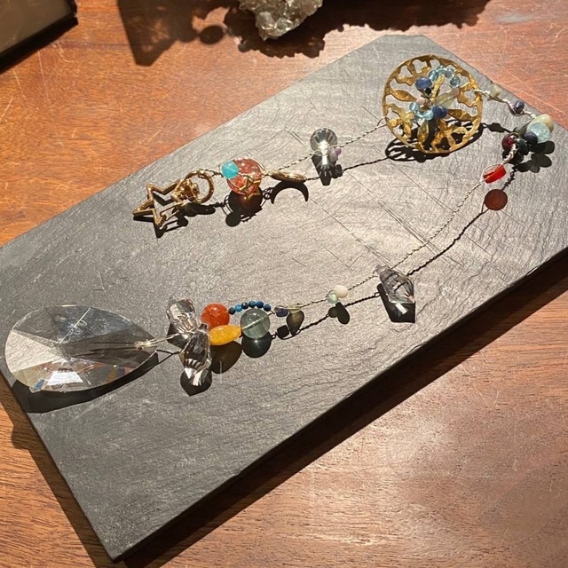 Salon de Charmer 宇佐美聖子がお送りする 〜Bisowa Stone 〜 ∞サンキャッチャー∞ ○彩ノ光降る世界へ○ 天然石のサンキャッチャー。 自然光はもちろん、お部屋でライトに当ててもキラキラと優しく輝きます。 BISOWAオリジナルチャーム、惑星チャームに石達にと光が重なります。 鞄につけたり、車のバックミラーに、またキーホルダーとしても様々にお楽しみください。 【使用天然石】 宇和島パール ローズクォーツ アメジスト マラカイト アマゾナイト スモーキークォーツ クリスタルポイント 【サイズ】 長さ:22cm 下記店舗で実物をご覧いただけます。 水窪の星の駅 碧 -AOI- 静岡県浜松市天竜区水窪町奥領家3281-8 営業時間 10:00~14:00 月曜定休 除菌や検温など、お客様とスタッフの安心・安全に十分に配慮しながら営業しています。ご理解とご協力のほどよろしくお願いいたします。 http://bisowa.co.jp Photo by Seiko Usami / Written by Goto オーダーもご予算で随時受付しております。 お問い合わせページより、ご連絡お待ちしております。