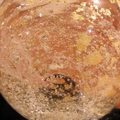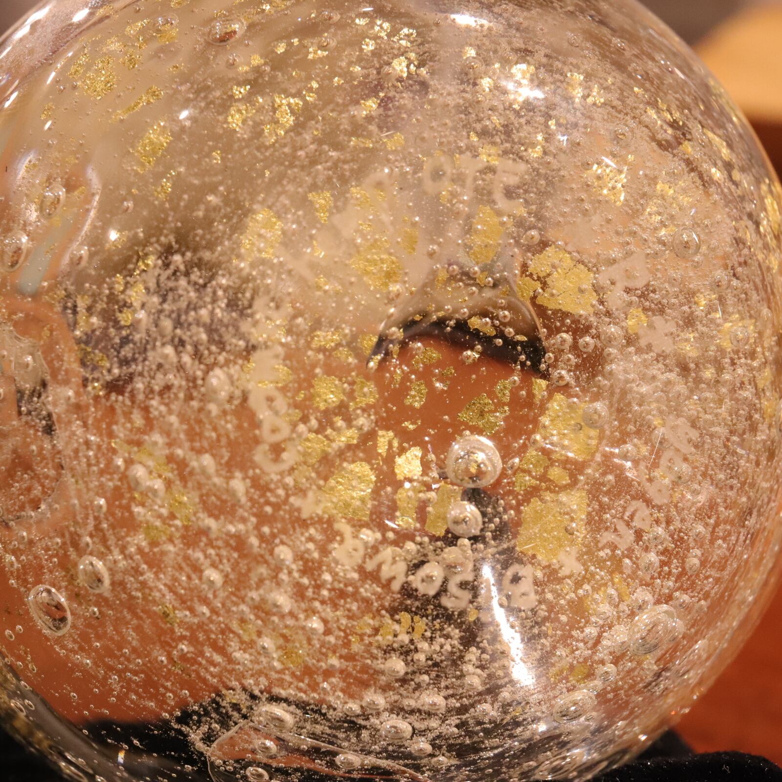 金箔や麻炭の何層にもなるガラスの中に天然石の輝きがプラスされ、微生物、鉱物、植物が調和した作品となりました。